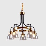 Vintage Metal and Glass Ceiling Chandelier - Black and Antique Brass / 110x65cm / Iron+Glass